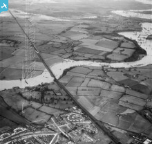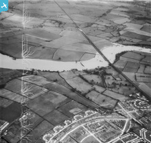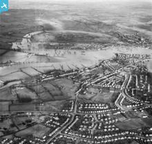 The River Severn in flood, Preston, 1948. This ...
