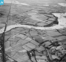 The River Severn in flood at Emstrey, Atcham, 194...