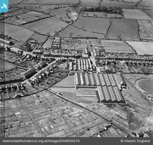 | Pennawd | [EAW000176] The Clutsom and Kemp Ltd Elastic Belt and Garter Manufactory off Highfield Street, Coalville, 1946. This image has been produced from a damaged negative. |