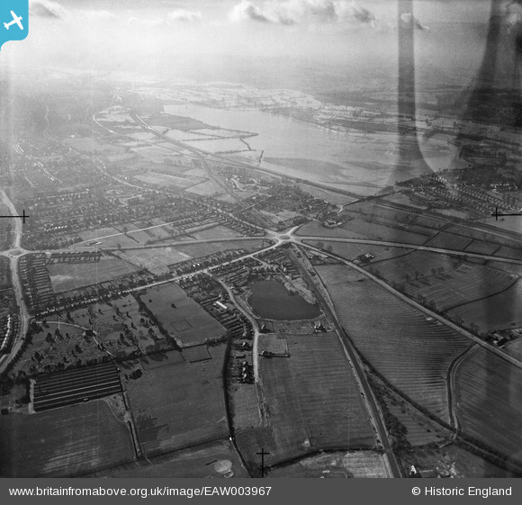 EAW003967 ENGLAND (1947). The Wolvercote Roundabout and flooding at Wolvercote Common and Port Meadow, Wolvercote, from the north-east, 1947. This image has been produced from a damaged negative.