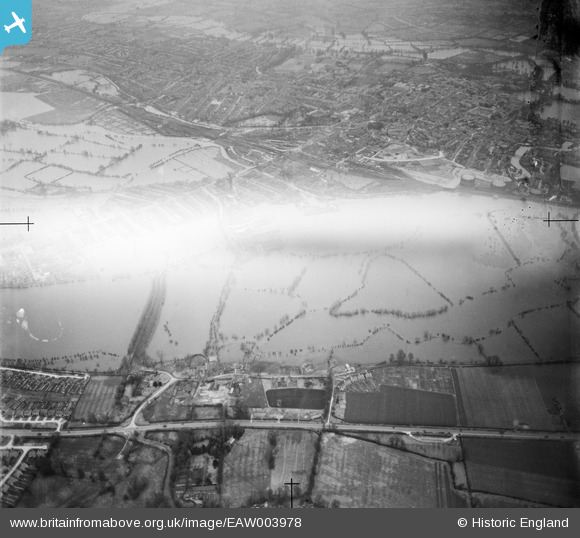 | Pennawd | [EAW003978] Flooding around New Botley and North Hinksey, New Botley, from the south-west, 1947. This image has been produced from a damaged negative. |