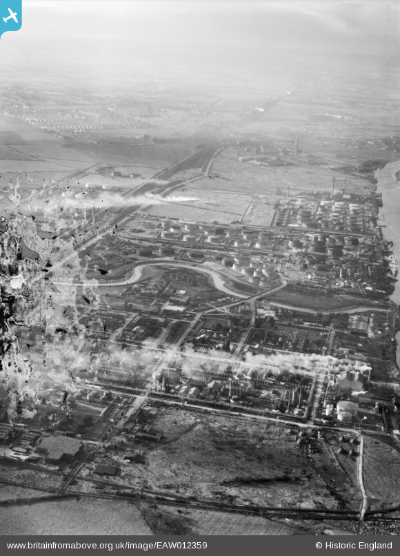 EAW012359 ENGLAND (1947). The Stanlow Oil Refinery, Ellesmere Port, from the east, 1947. This image has been produced from a damaged negative.