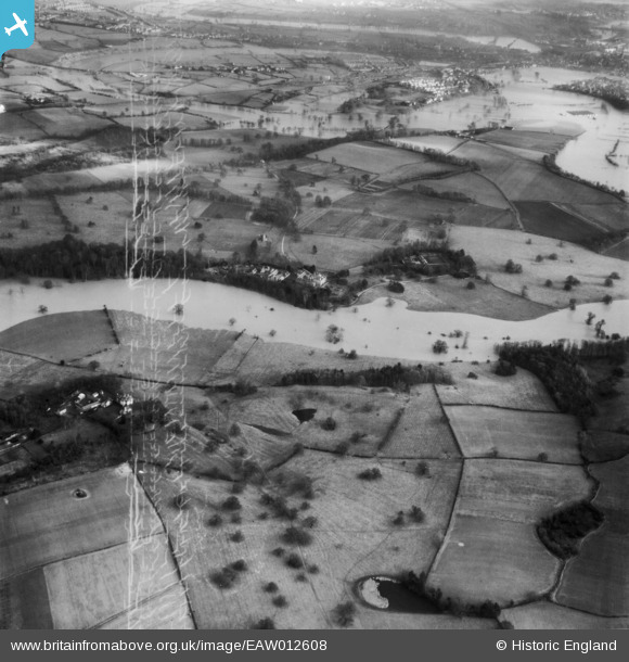 | Pennawd | [EAW012608] The River Severn in flood at Berwick House, Upper Berwick, 1948. This image has been produced from a damaged negative. |