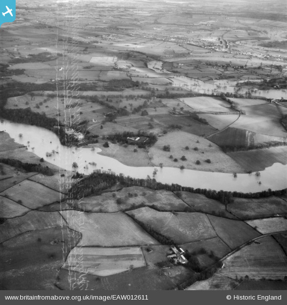 | Pennawd | [EAW012611] The River Severn in flood at Berwick House, Upper Berwick, 1948. This image has been produced from a damaged negative. |