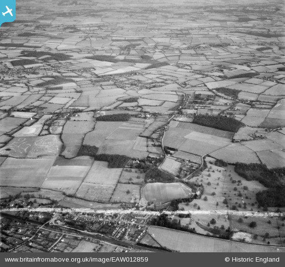 | Pennawd | [EAW012859] Bury Farm, the village and the surrounding countryside, Great Missenden, 1948. This image was marked by Aerofilms Ltd for photo editing. |