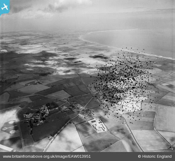EAW013951 ENGLAND (1948). Countryside between former RAF Lissett and Bridlington Bay, Lissett, from the south-west, 1948. This image has been produced from a damaged negative.