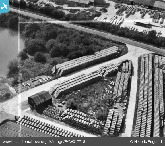 | Pennawd | [EAW017718] Concrete Pipe Works off Littleton Lane, Shepperton Green, 1948. This image has been produced from a print marked by Aerofilms Ltd for photo editing. |