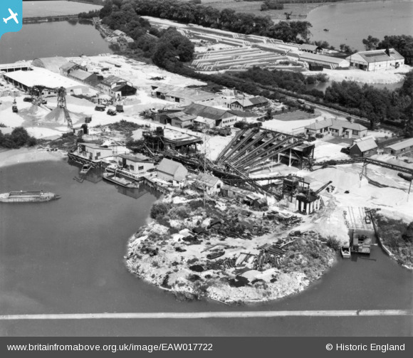 EAW017722 ENGLAND (1948). Aggregates quarrying and processing off Littleton Lane, Shepperton Green, 1948. This image has been produced from a print marked by Aerofilms Ltd for photo editing.