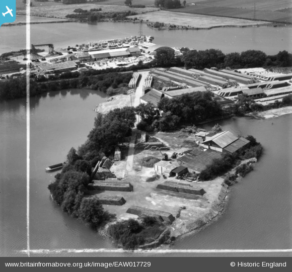 | Pennawd | [EAW017729] Concrete Pipe Works off Littleton Lane, Shepperton Green, 1948. This image has been produced from a print marked by Aerofilms Ltd for photo editing. |