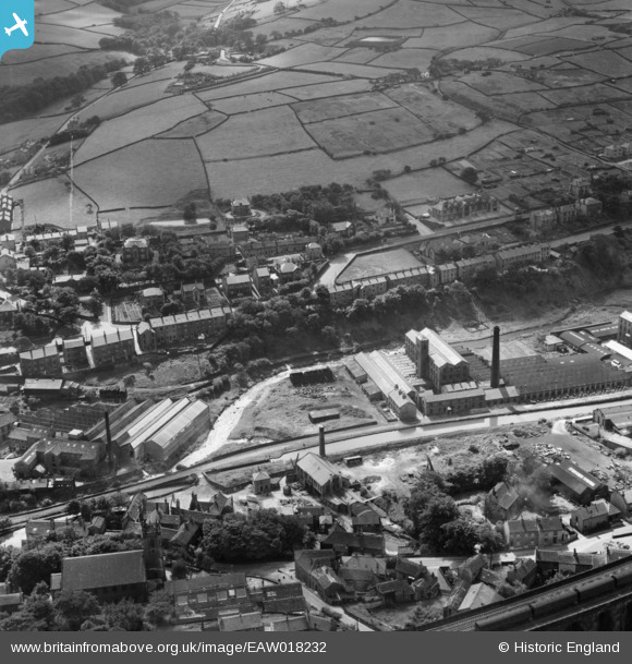EAW018232 ENGLAND (1948). Mills adjacent to the Huddersfield Narrow Canal, Slaithwaite, 1948
