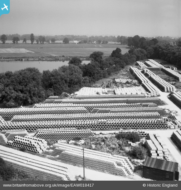 | Pennawd | [EAW018417] Concrete Pipe Works off Littleton Lane, Shepperton Green, from the south, 1948 |