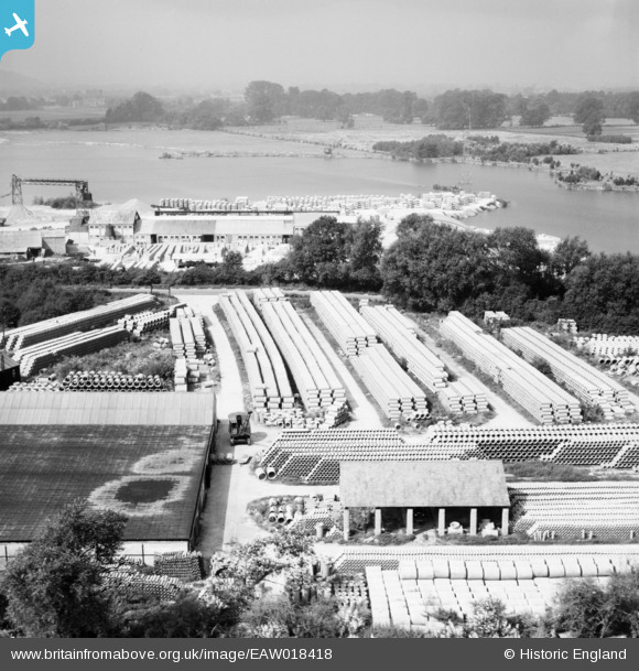 | Pennawd | [EAW018418] Concrete Pipe Works off Littleton Lane, Shepperton Green, from the east, 1948 |