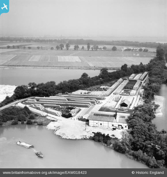 | Pennawd | [EAW018423] Concrete Pipe Works off Littleton Lane, Shepperton Green, from the south, 1948 |
