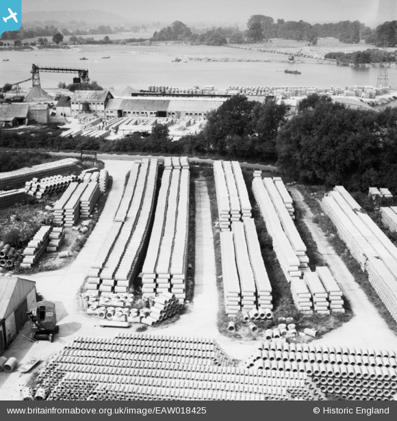 | Pennawd | [EAW018425] Concrete Pipe Works off Littleton Lane, Shepperton Green, from the east, 1948 |