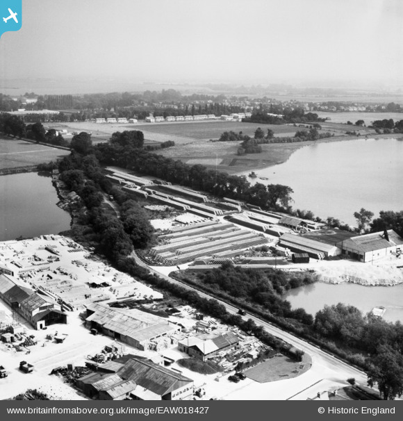 | Pennawd | [EAW018427] Concrete Pipe Works off Littleton Lane, Shepperton Green, from the south-west, 1948 |