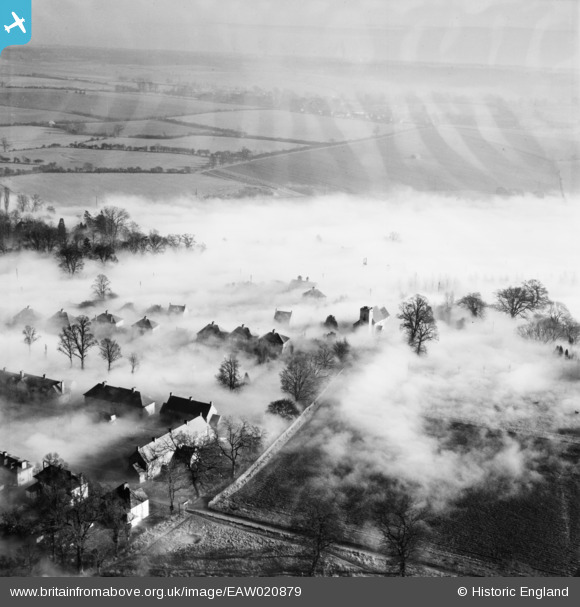 EAW020879 ENGLAND (1949). St Mary's Church and environs under fog, Little Wymondley, 1949. This image has been produced from a damaged negative.