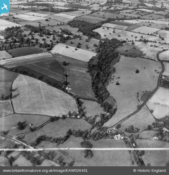 | Pennawd | [EAW026431] Fields between Coton Dingle and Coton Hall, Alveley, 1949. This image has been produced from a print marked by Aerofilms Ltd for photo editing. |