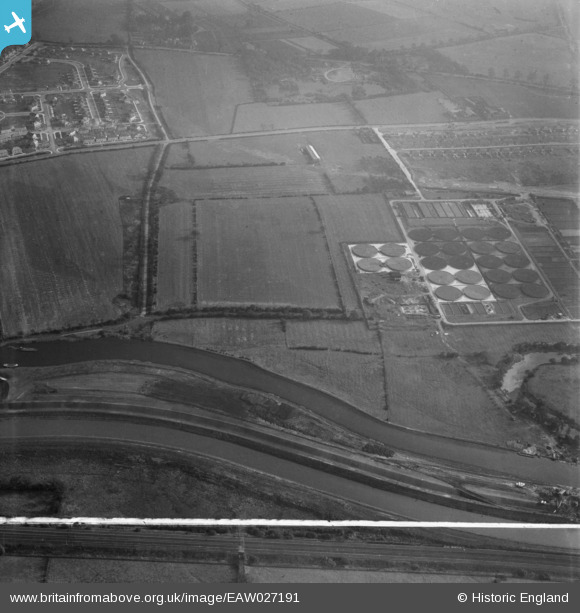 EAW027191 ENGLAND (1949). Sewage Works off Doncaster Road, Doncaster, 1949. This image was marked by Aerofilms Ltd for photo editing.