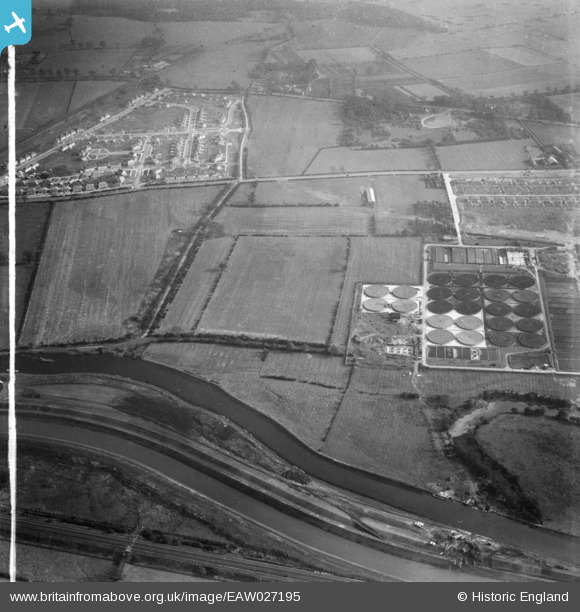 EAW027195 ENGLAND (1949). Sewage Works and housing estate surrounding Moffat Gardens, Doncaster, 1949. This image was marked by Aerofilms Ltd for photo editing.