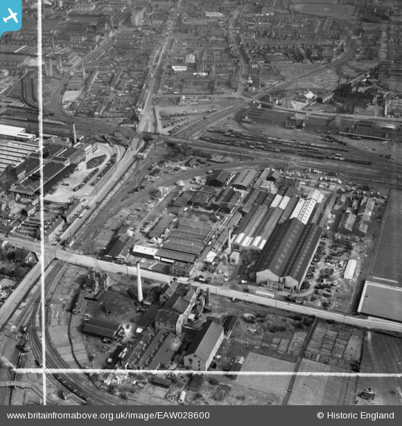 | Pennawd | [EAW028600] The Sharp Brothers and Knight Ltd Joinery Works, Shobnall, 1950. This image was marked by Aerofilms Ltd for photo editing. |