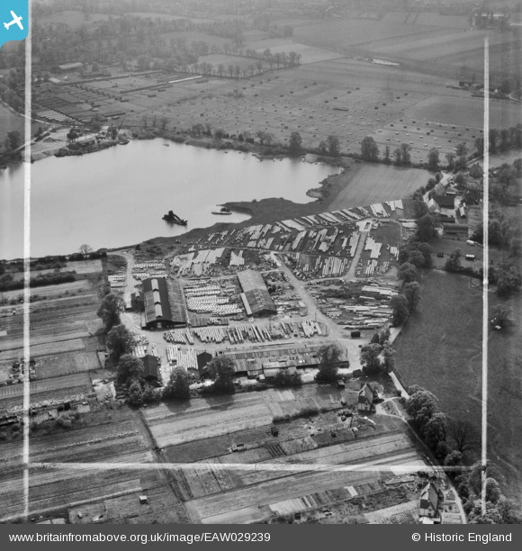 EAW029239 ENGLAND (1950). The Norcon Ltd Concrete Pipe Works, Ripley, 1950. This image was marked by Aerofilms Ltd for photo editing.