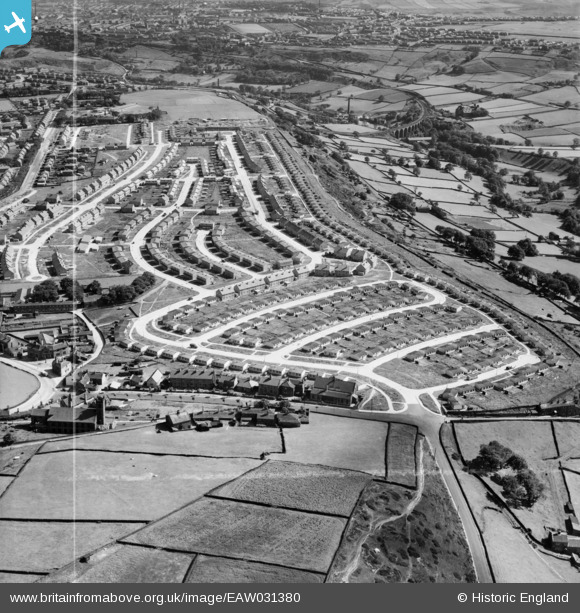 EAW031380 ENGLAND (1950). Housing estate at the top of Rake Bank, Ovenden, 1950. This image was marked by Aerofilms Ltd for photo editing.