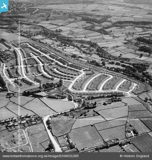 | Pennawd | [EAW031385] Housing estate at the top of Rake Bank, Ovenden, 1950. This image was marked by Aerofilms Ltd for photo editing. |