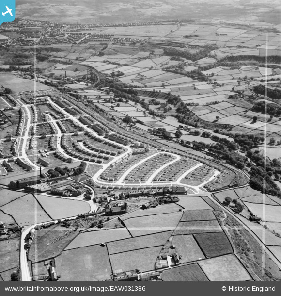 EAW031386 ENGLAND (1950). Housing estate at the top of Rake Bank, Ovenden, 1950. This image was marked by Aerofilms Ltd for photo editing.