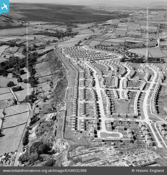 | Pennawd | [EAW031388] Housing estate at the top of Rake Bank, Ovenden, 1950. This image was marked by Aerofilms Ltd for photo editing. |