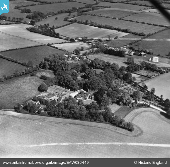 | Pennawd | [EAW036449] Bighton Manor and the village, Bighton, 1951. This image has been produced from a print marked by Aerofilms Ltd for photo editing. |