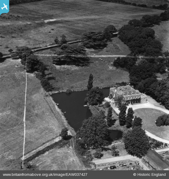 | Pennawd | [EAW037427] East Donyland Hall, Rowhedge, 1951. This image has been produced from a print marked by Aerofilms Ltd for photo editing. |