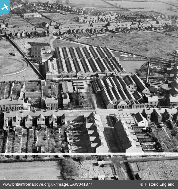 | Pennawd | [EAW041877] Clutsom and Kemps Ltd Elastic Belt and Garter Factory, Coalville, 1952. This image was marked by Aerofilms Ltd for photo editing. |