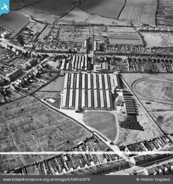 | Pennawd | [EAW041879] Clutsom and Kemps Ltd Elastic Belt and Garter Factory, Coalville, 1952. This image was marked by Aerofilms Ltd for photo editing. |