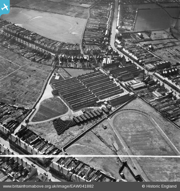 | Pennawd | [EAW041882] Clutsom and Kemps Ltd Elastic Belt and Garter Factory, Coalville, 1952. This image was marked by Aerofilms Ltd for photo editing. |
