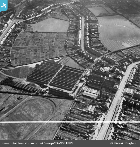 | Pennawd | [EAW041885] Clutsom and Kemps Ltd Elastic Belt and Garter Factory, Coalville, 1952. This image was marked by Aerofilms Ltd for photo editing. |