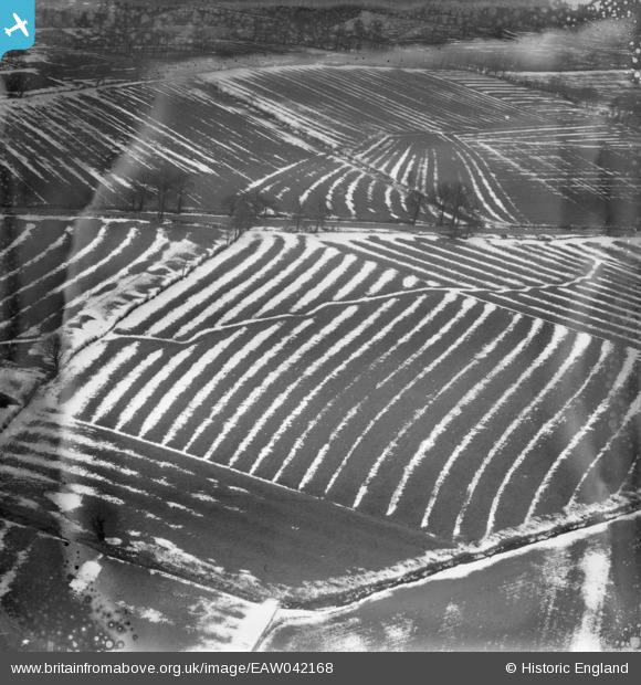EAW042168 ENGLAND (1952). Snow in the fields around Brokene Street, Medbourne, 1952. This image has been produced from a damaged negative.