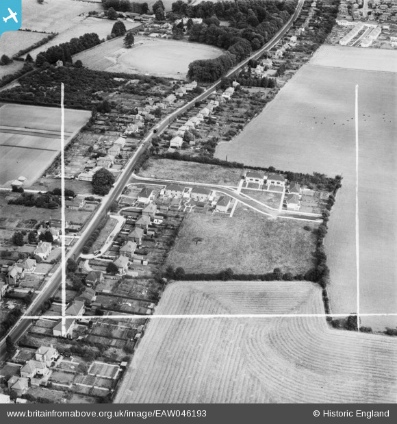 EAW046193 ENGLAND (1952). Worting Road and new housing at Salisbury Gardens, South Ham, 1952. This image was marked by Aerofilms Ltd for photo editing.