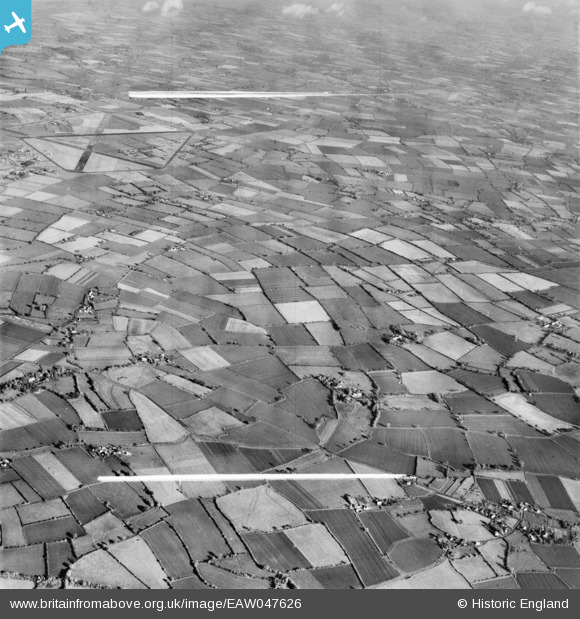 | Pennawd | [EAW047626] Farmland surrounding Church Farm in Linstead Magna, Linstead Hall, 1952. This image was marked by Aerofilms Ltd for photo editing. |