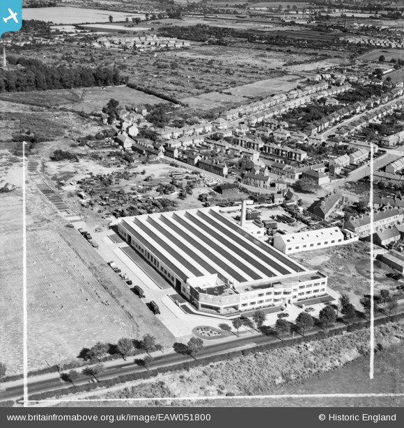 EAW051800 ENGLAND (1953). The Murphy Brothers Ltd Factory on Loughborough Road and environs, Rushey Mead, 1953. This image was marked by Aerofilms Ltd for photo editing.
