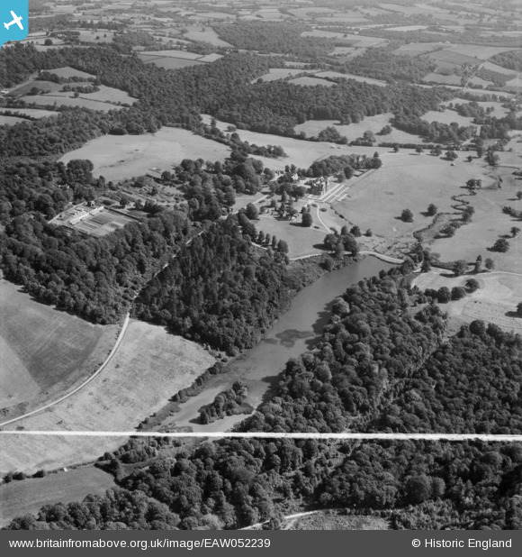 EAW052239 ENGLAND (1953). Bayham Lake, Bayham Abbey and surrounding parkland, Lamberhurst, 1953. This image was marked by Aerofilms Ltd for photo editing.