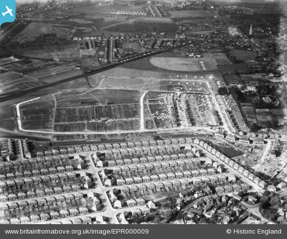 EPR000009 ENGLAND (1934). Housing estate under construction surrounding Grosvenor Park, Feltham, 1934