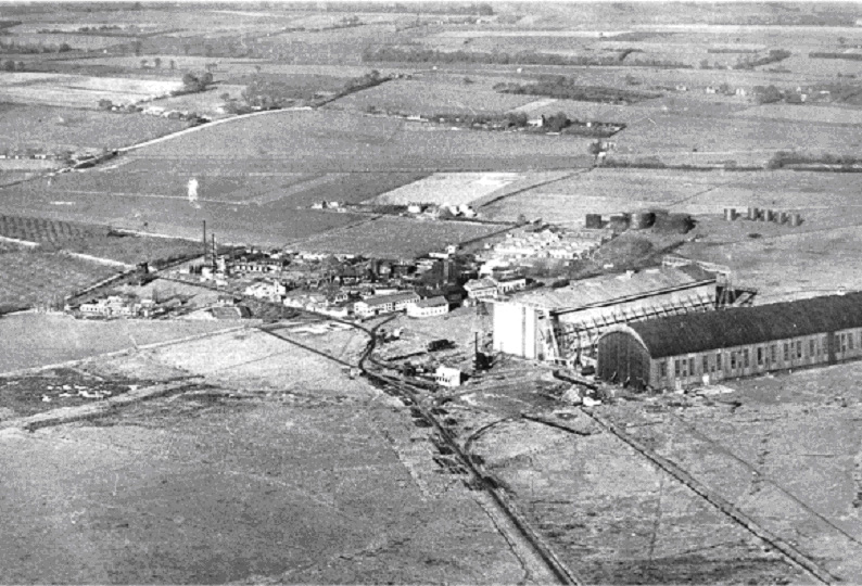 I am interested in how you have dated this photo. The admiralty didn't put the site up for sale till 1922 when it was purchased by Messrs. Holm & Co. Ltd. They set up timber pulping equipment in what was described as the "Balloon Stores Depot" for the papermaking. Berry Wiggins Oil refinery was not built till 1928. This does look like a shot of an oil refinery and the bases of the demolished airsheds are clearly visable in the foreground so I would suggest the picture is 1930 rather than 1920 |