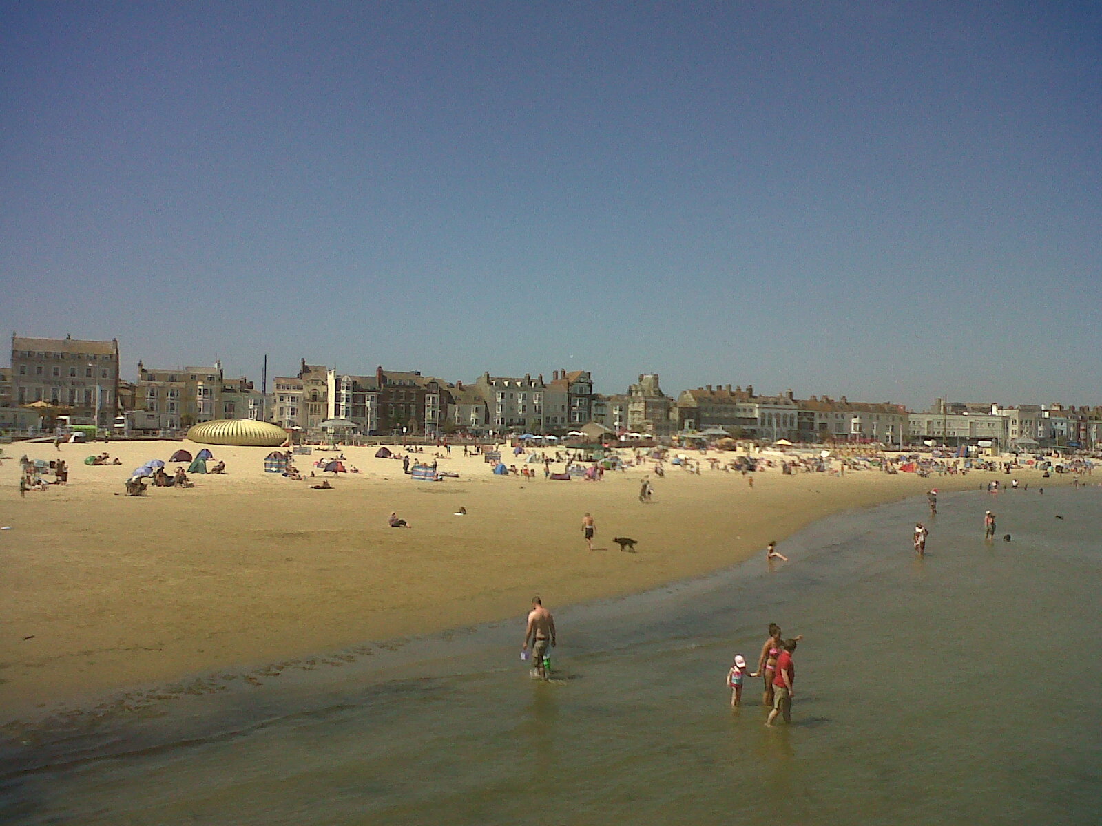![]() Looking north along the beach from near the Pavilion Theatre. |