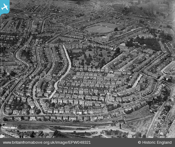 EPW048321 ENGLAND (1935). St Andrew's Park, the County Cricket Ground and the surrounding residential area, Montpelier, 1935