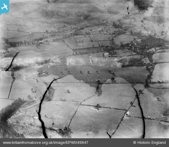 EPW049847 ENGLAND (1936). The River Worle, Minnie Coppice and surrounding countryside, Worfield, from the north, 1936. This image has been produced from a damaged negative.