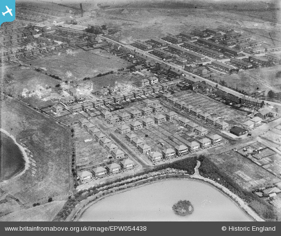 | Pennawd | [EPW054438] The residential area adjacent to Firs Park Boating Lake, Westleigh, 1937. This image has been produced from a damaged negative. |