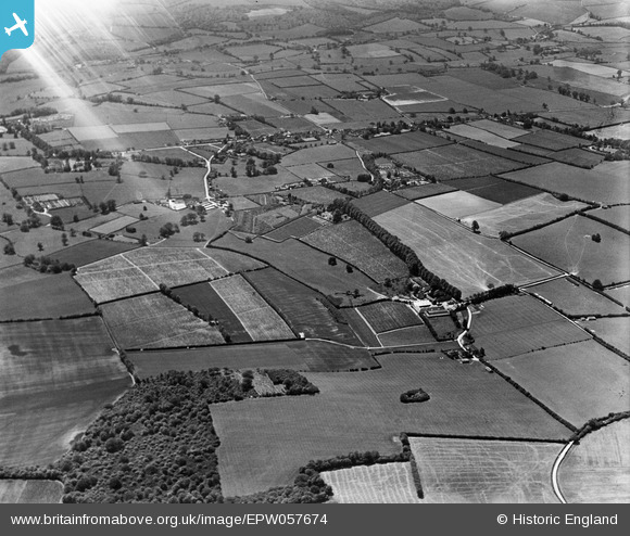 EPW057674 ENGLAND (1938). Bury Court Farm and the surrounding countryside, Bentley, 1938. This image has been affected by flare.