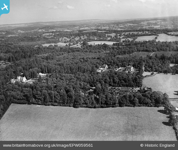 | Pennawd | [EPW059561] Stilemans and surrounding countryside, Munstead Heath, from the south-west, 1938 |