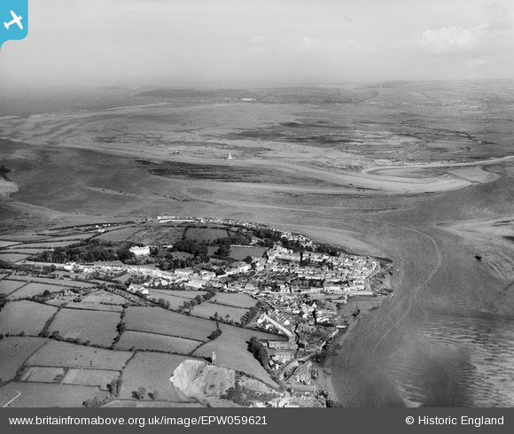 | Pennawd | [EPW059621] The mouth of the River Taw, Braunton Burrows and the village, Appledore, from the south, 1938 |