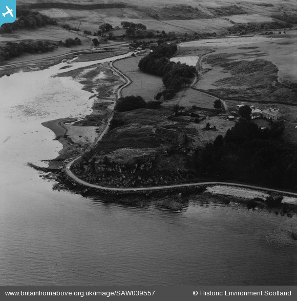 | Pennawd | [SAW039557] Aros Castle and Aros Mains Farm, Mull. An oblique aerial photograph taken facing west. This image has been produced from a print. |